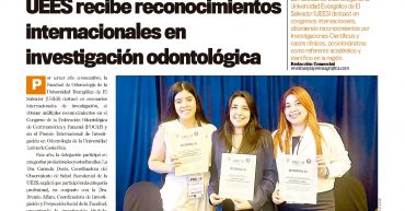 NOTA EN LA PRENSA GRAFICA: UEES RECIBE RECONOCIMIENTOS INTERNANCIONALES EN INVESTIGACIÒN ODONTOLÒGICA