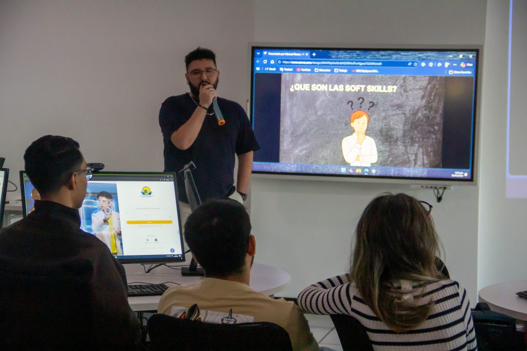 La jornada fue impartida por el Ing. Manuel Rivera, quien compartió su experiencia profesional en el sector tecnológico, destacando la importancia de las habilidades blandas como un factor clave para la inserción laboral y el crecimiento dentro de la industria.