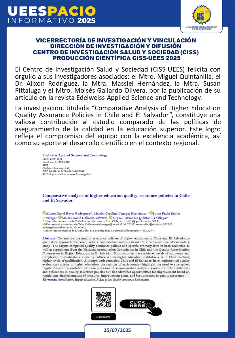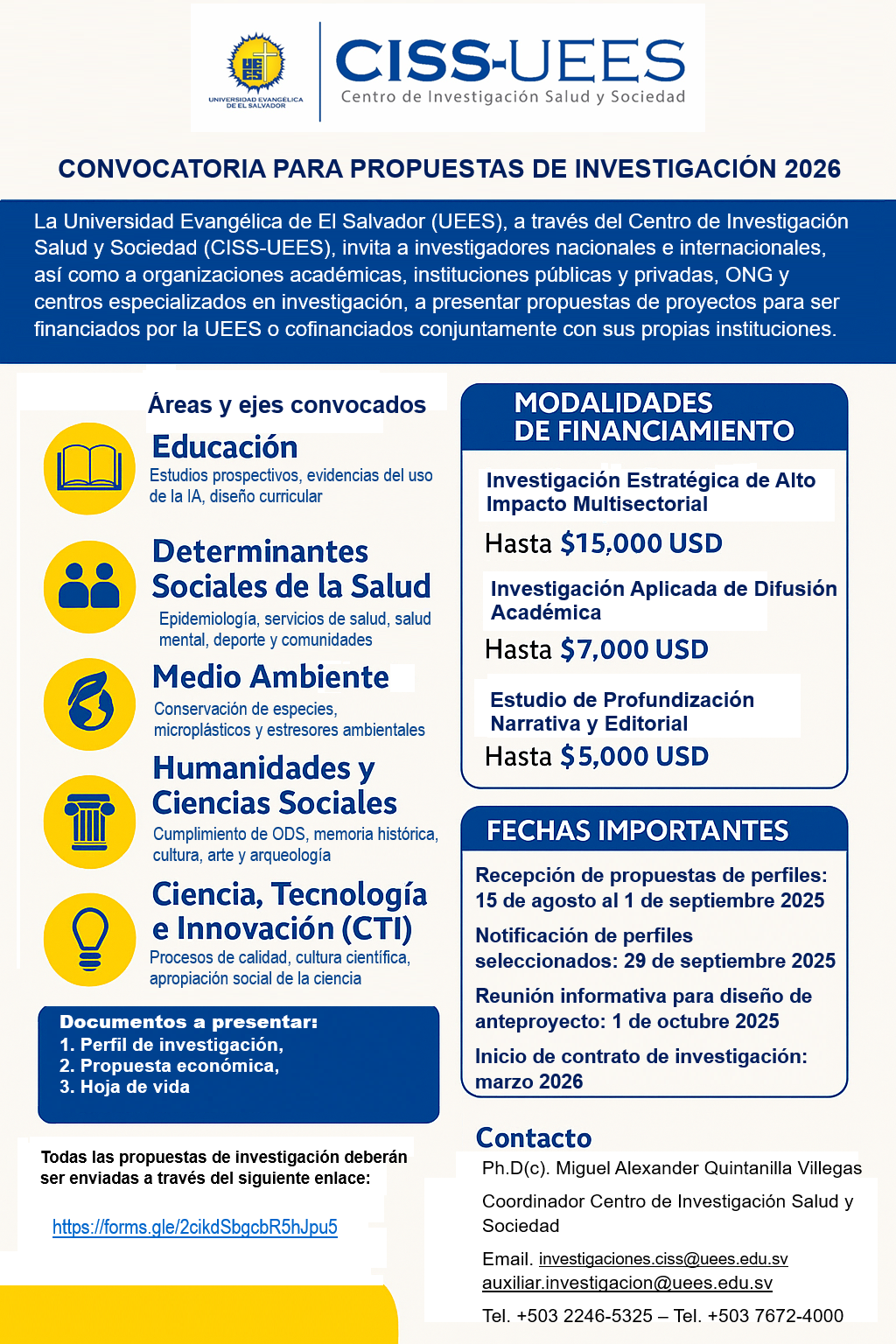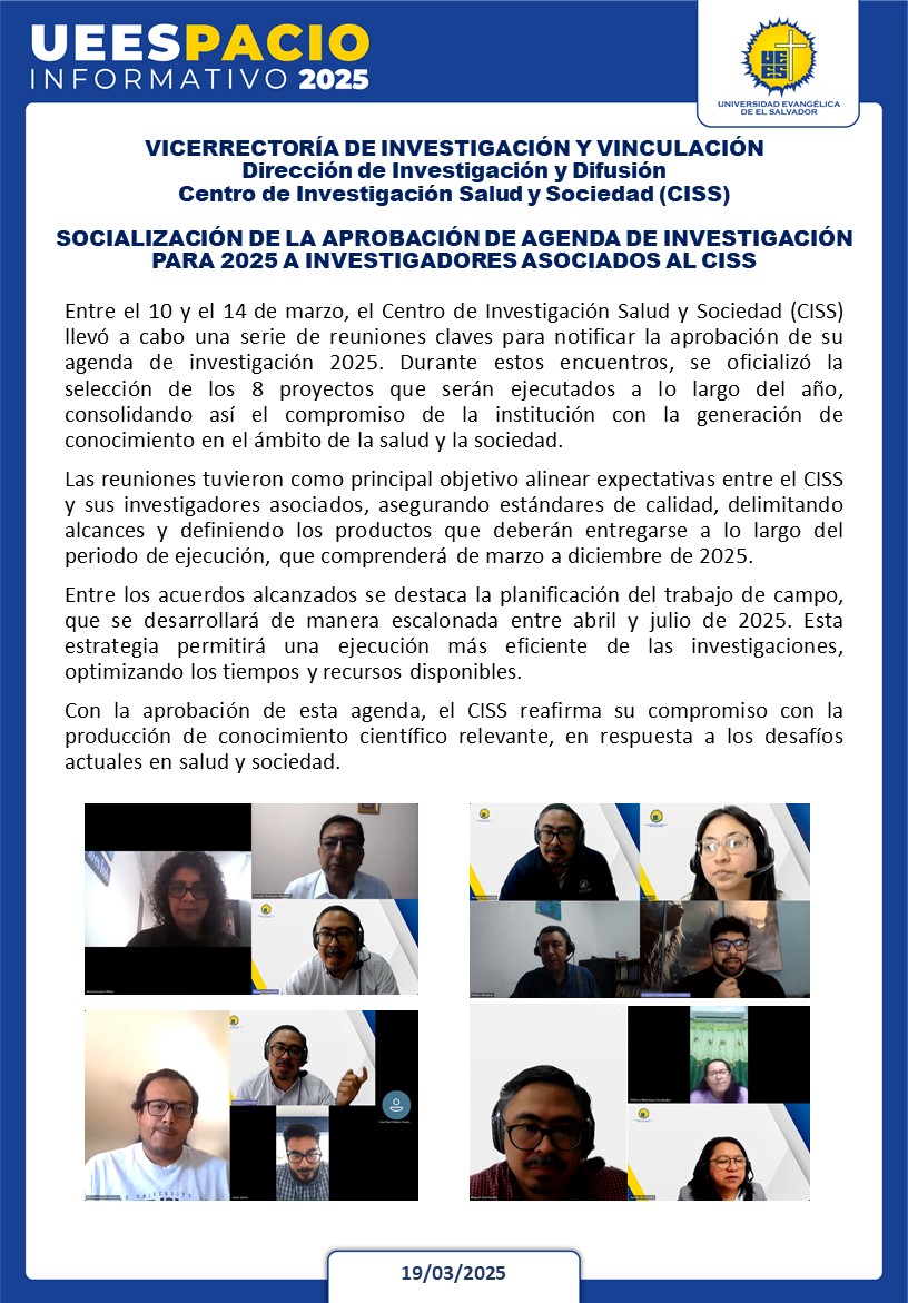 La Universidad Evangélica de El Salvador (UEES), a través del Centro de Investigación Salud y Sociedad (CISS-UEES)
