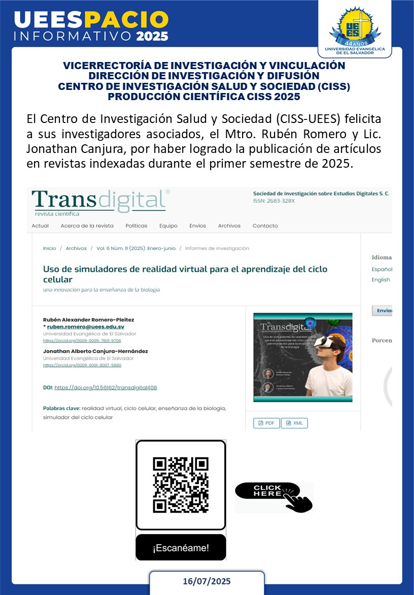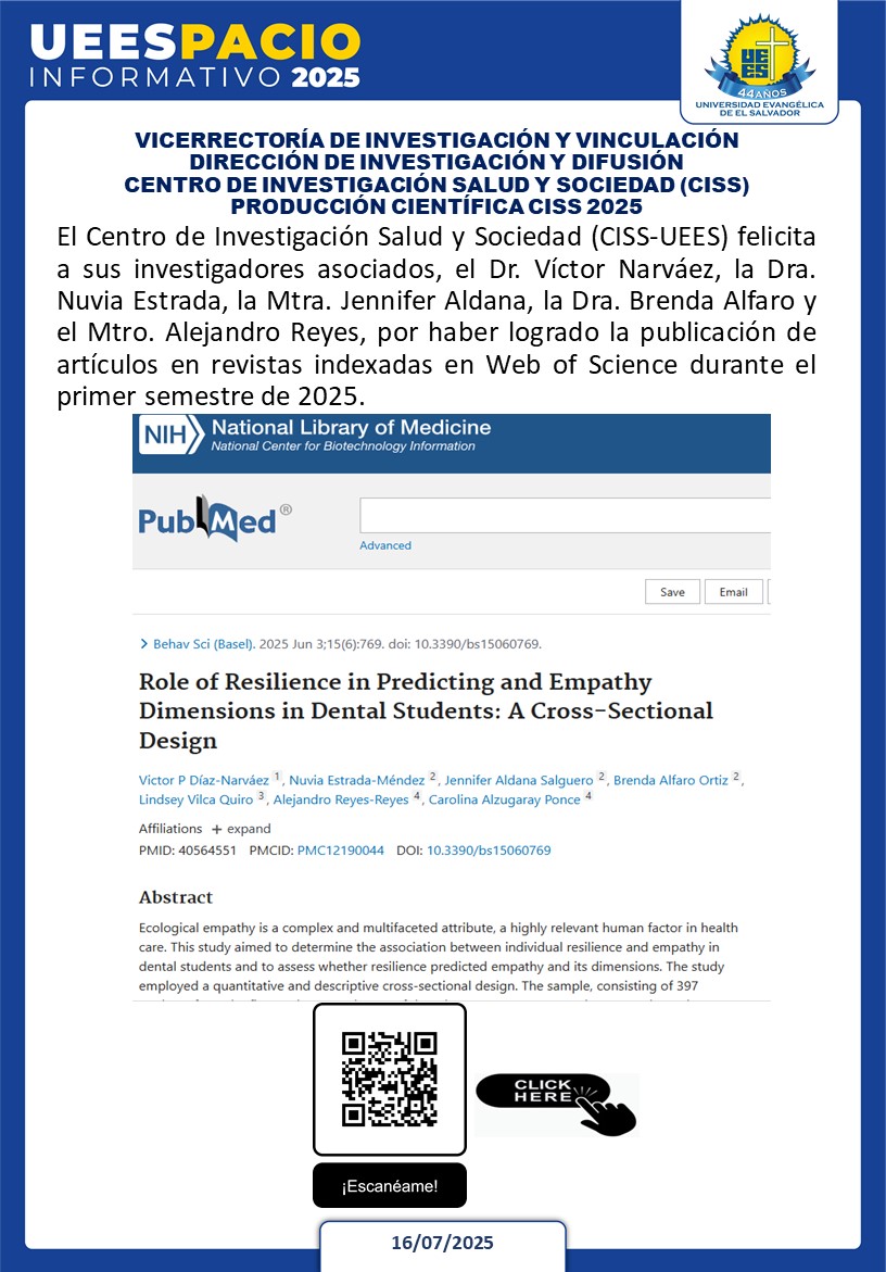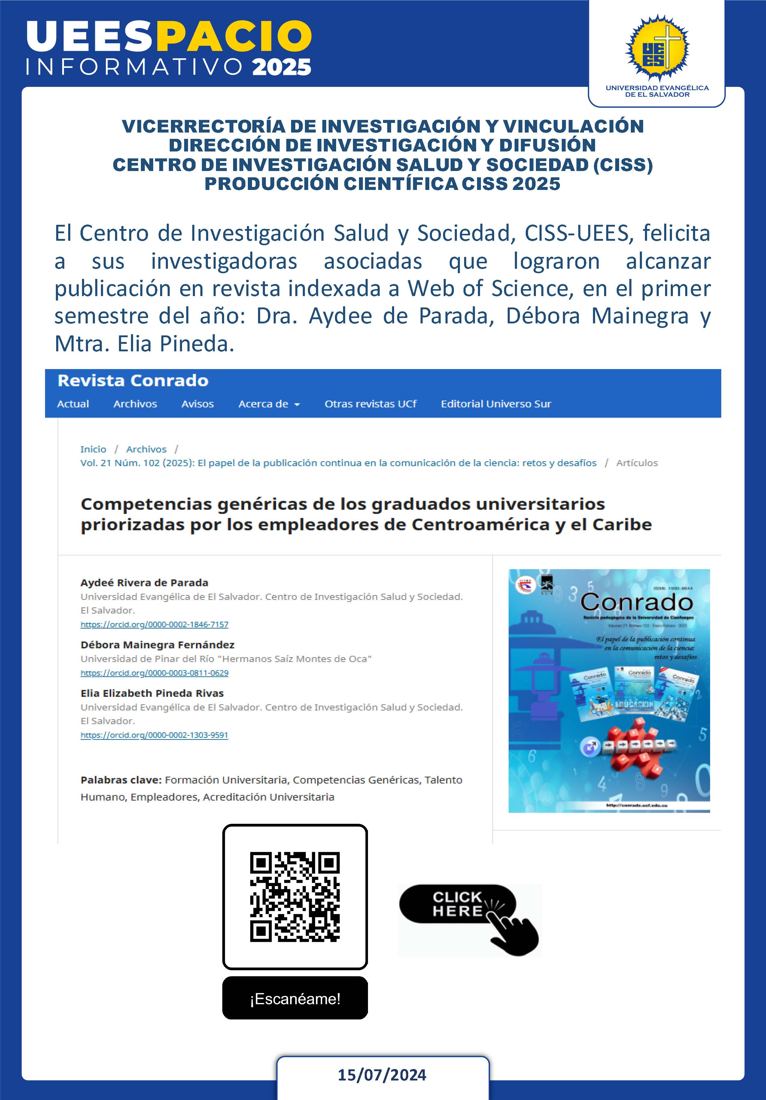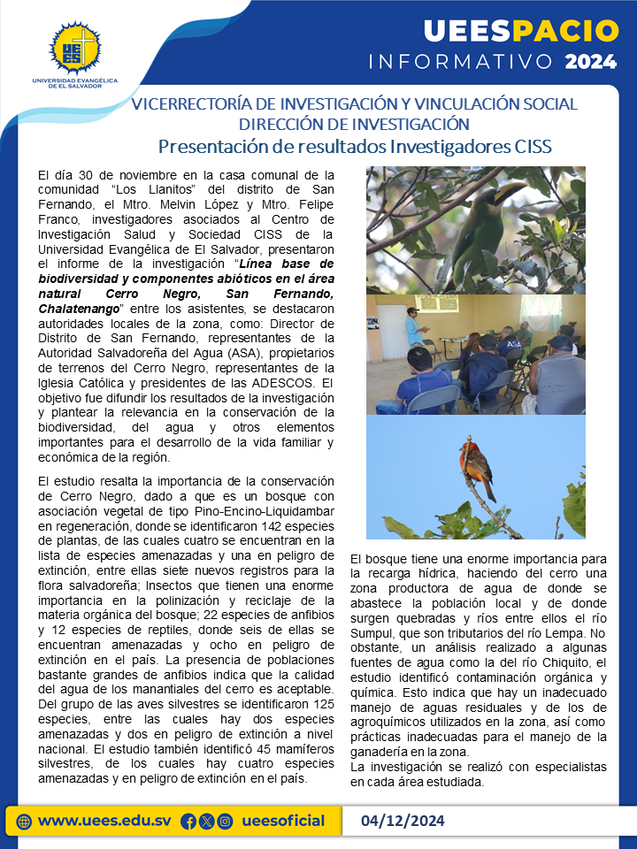 La Universidad Evangélica de El Salvador (UEES), a través del Centro de Investigación Salud y Sociedad (CISS-UEES)