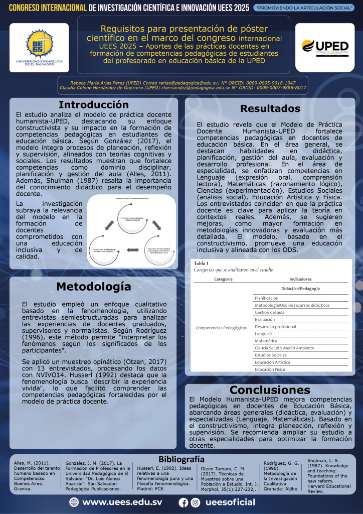 13. El póster presenta de forma clara y coherente el impacto del Modelo de Práctica Docente Humanista-UPED en la formación de competencias pedagógicas. Destaca la solidez teórica y metodológica del estudio, así como la pertinencia de sus resultados para fortalecer la práctica docente. ¡Excelente aporte Rebeca!