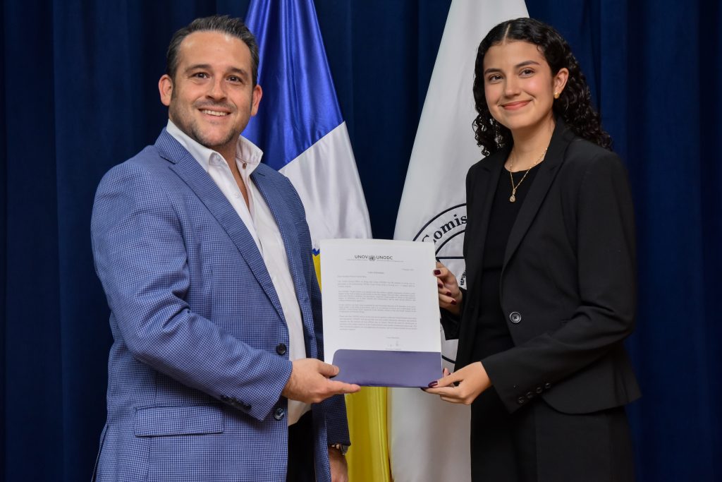 En un acto realizado el martes 10 de febrero de 2026, en el Aula Magna de la Universidad Evangélica de El Salvador, la Comisión Nacional Antidrogas (CNA) entregó oficialmente a Fernanda Patricia García Mata, estudiante de la carrera de Profesorado y Licenciatura en Educación Inicial y Parvularia, la carta de aceptación que la acredita como Representante de El Salvador en el Foro Mundial de la Juventud, organizado por la Oficina de las Naciones Unidas contra la Droga y el Delito (UNODC), que se llevará a cabo en Viena en marzo del presente año.