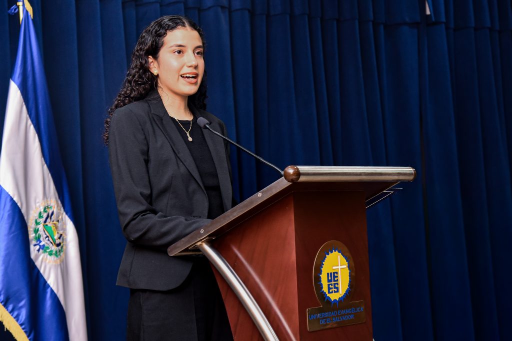 Durante el acto, se resaltó el orgullo institucional por este logro académico y el compromiso de la estudiante de representar dignamente a la UEES y a El Salvador en este importante escenario internacional.