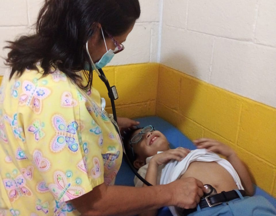 La Proyección Social en el área de salud se trabaja en tres frentes: La salud médica general, la salud bucal y salud mental; incorporando en cada una de las intervenciones un enfoque preventivo e integral. El Comité de Proyección Social de la facultad de Medicina ejecuta el Programa de Promoción Integral de la Salud. Las principales acciones son de tipo preventivo y están centradas en los territorios focalizados, particularmente en el Centro Médico Familiar Shalom, ubicado en el Municipio de Santiago Texacuangos, donde participan las Escuelas de Medicina y Nutrición; por otra parte, se apoya con un médico de planta a la Clínica Monseñor Romero, ubicada en la Parroquia de Nuestra Señora de Lourdes, en el Municipio de Ciudad Delgado, en la cual se brinda consulta médica para las poblaciones aledañas de los Municipios de Apopa y Ciudad Delgado, a esta labor se suma con acciones preventivas la Escuela de Enfermería. Este Programa también ejecuta acciones en el marco del Programa de Desarrollo Comunitario Transforma Cabañas el cual se ejecuta en asocio con la Iglesia Auditorio Cristiano en comunidades del Municipio de Victoria, en el Departamento de Cabañas.