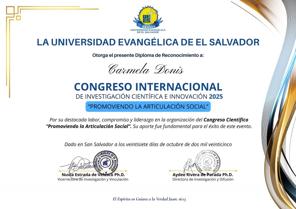El pasado mes de octubre se llevó a cabo en las instalaciones de la Universidad Evangélica de El Salvador el Congreso Internacional de Investigación Científica e Innovación 2025 “Promoviendo la Articulación Social”, Coordinado por la Vicerrectoría de Investigación y Vinculación (VRIV).