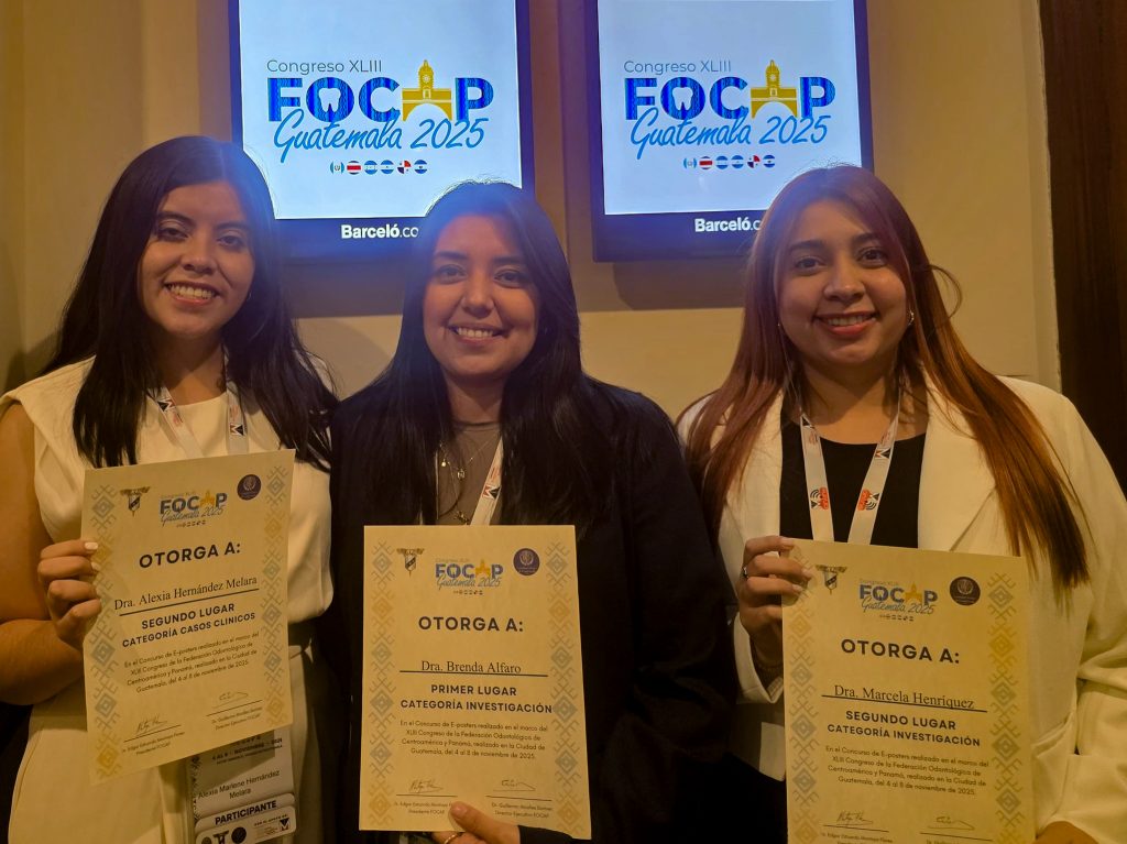 Asimismo, Dra. Brenda Alfaro y Dra. Carmela Donis participaron con la investigación titulada ‘’Propiedades mecánicas y termoplásticas de coronas provisionales impresas en 3D con el biopolímero ácido poliláctico’’, con el cual obtuvieron el primer lugar en la modalidad de investigación.