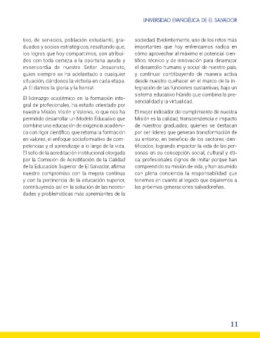 de la Educación Superior de El Salvador, afirma comprendido su misión de vida, y han asumido